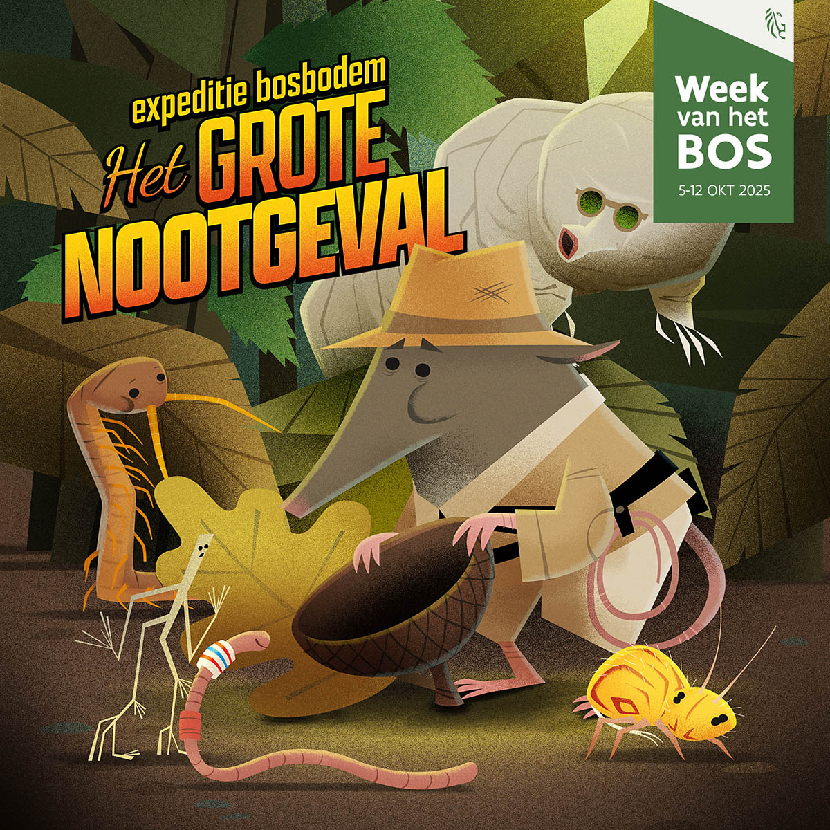 Meer dan 23.000 leerlingen namen tijdens de Week van het Bos 2024 deel aan de wedstrijd die verbonden was aan ons lespakket. En ook dit jaar maakt het Agentschap voor Natuur en Bos leerkrachten warm om met hun leerlingen het bos in te trekken. Voor zowel de kleuters als de leerlingen van de lagere school is er opnieuw een spannend kant-en-klaar lespakket ontwikkeld. Samen met Speurneus Spitsmuis gaan de leerlingen op Expeditie Bosbodem. Er heerst een NOOTgeval. Met een bodemkaart in de hand duiken de leerlingen onder de grond. Elke laag van de bosbodem heeft er zijn typische bewoners. Maak kennis met Mo Mosbeertje, Danny Duizendpoot, Stien Springstaart, Regi Regenworm en Zoë Zwamdraad.