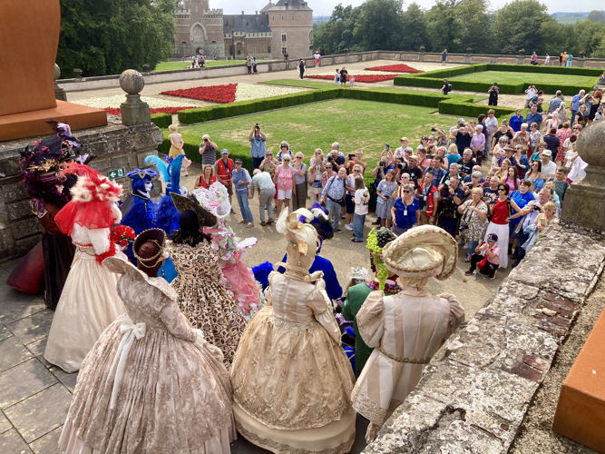 Die traditie van mysterie en vrijheid leeft vandaag voort in de iconische kostuums en het theatrale karakter van het Venetiaanse carnaval. Ook in België zijn er gepassioneerde liefhebbers, waaronder de groep « Regards Vénetiens », die dit kleurrijke spektakel tot leven brengt. In het groene decor van de domeinen komen de personages extra sterk tot hun recht.