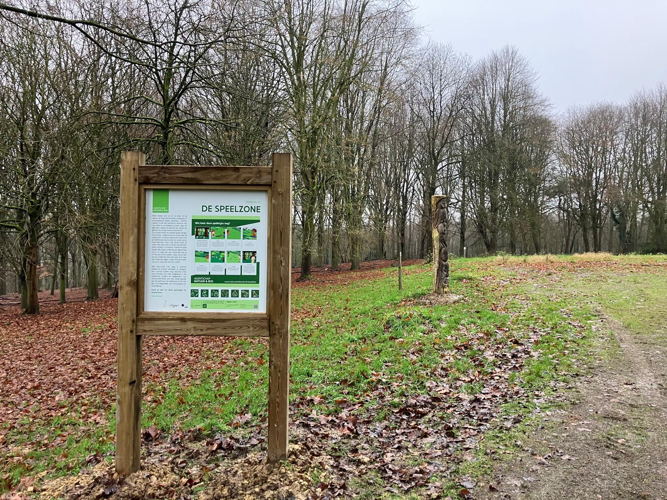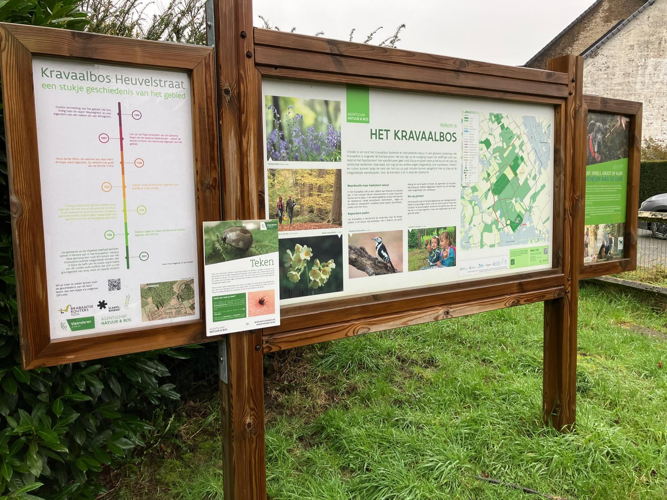 Infoborden verwelkomen bezoekers aan nieuwe ontmoetingsplek in het Kravaalbos