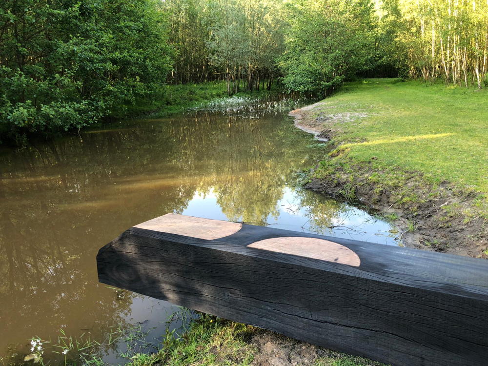 * in het Zoniënwoud ligt de natuuroase in een bosreservaat en zijn de objecten van de hand van de eigen bosarbeiders